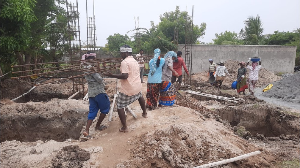 La seconde phase concerne désormais la construction des deux bâtiments réservés aux garçons, conformément aux exigences réglementaires indiennes.