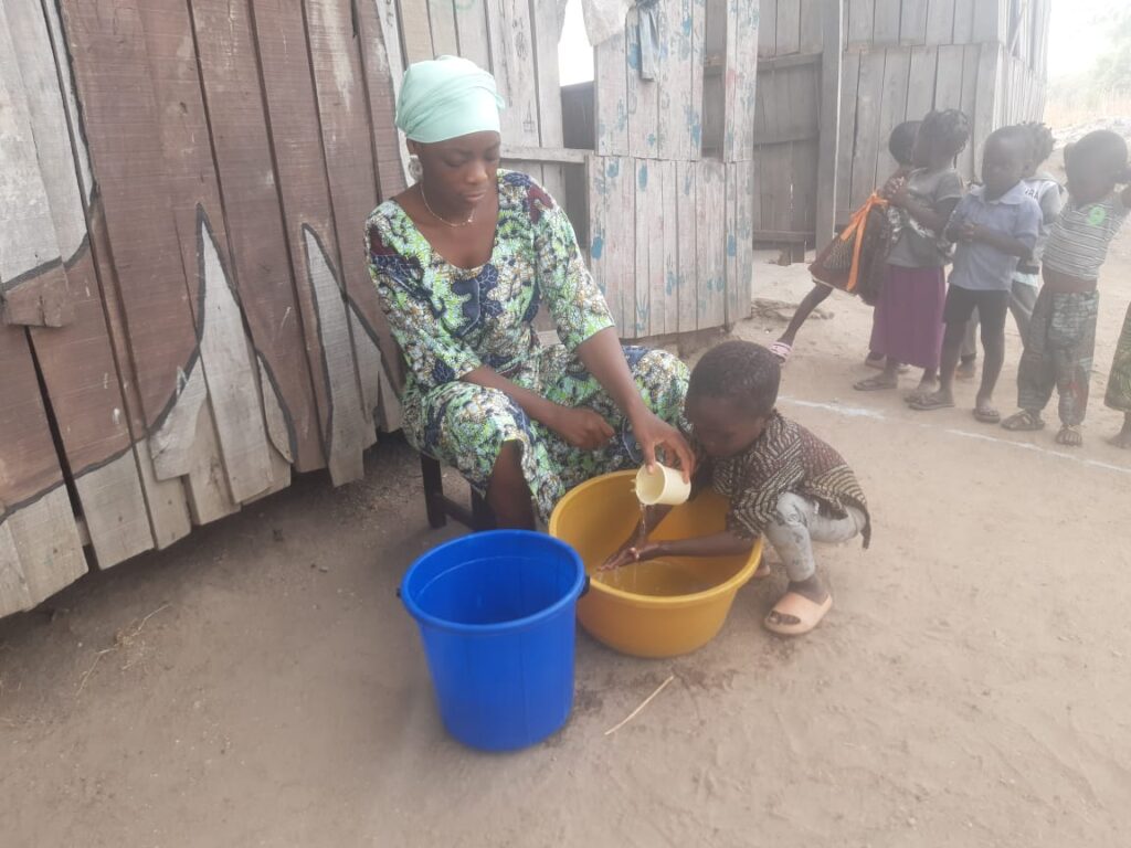 Après la mise en place du premier repas chaud hebdomadaire servi sur la carrière, une nouvelle étape importante a été franchie en faveur du bien-être des enfants fréquentant le Centre d’Éveil et d’Alphabétisation : la sensibilisation au lavage des mains avant le repas.