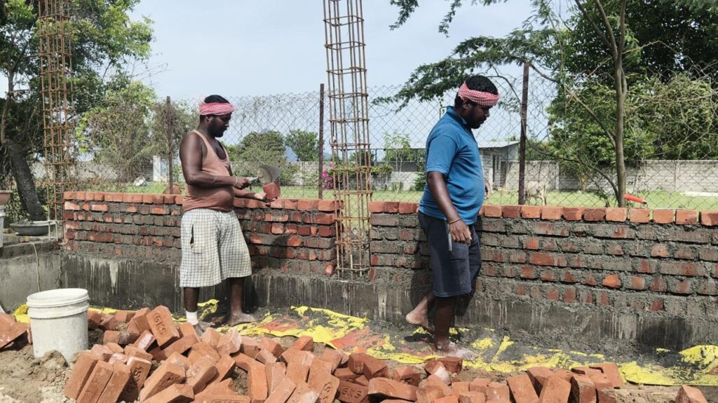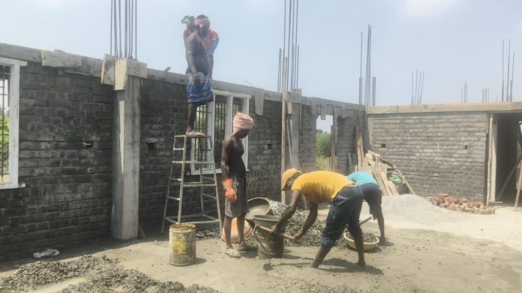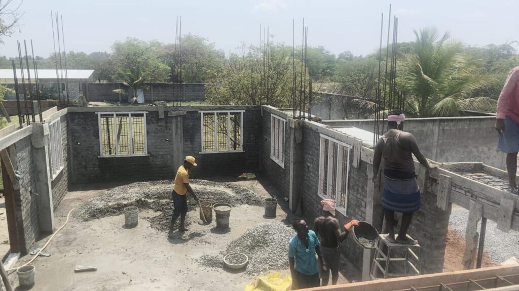 Le projet de nouvel orphelinat en Inde continue de se concrétiser. Ces dernières semaines, le chantier du bâtiment des garçons a atteint un cap majeur : le niveau des linteaux, étape essentielle dans la construction d’un bâtiment.