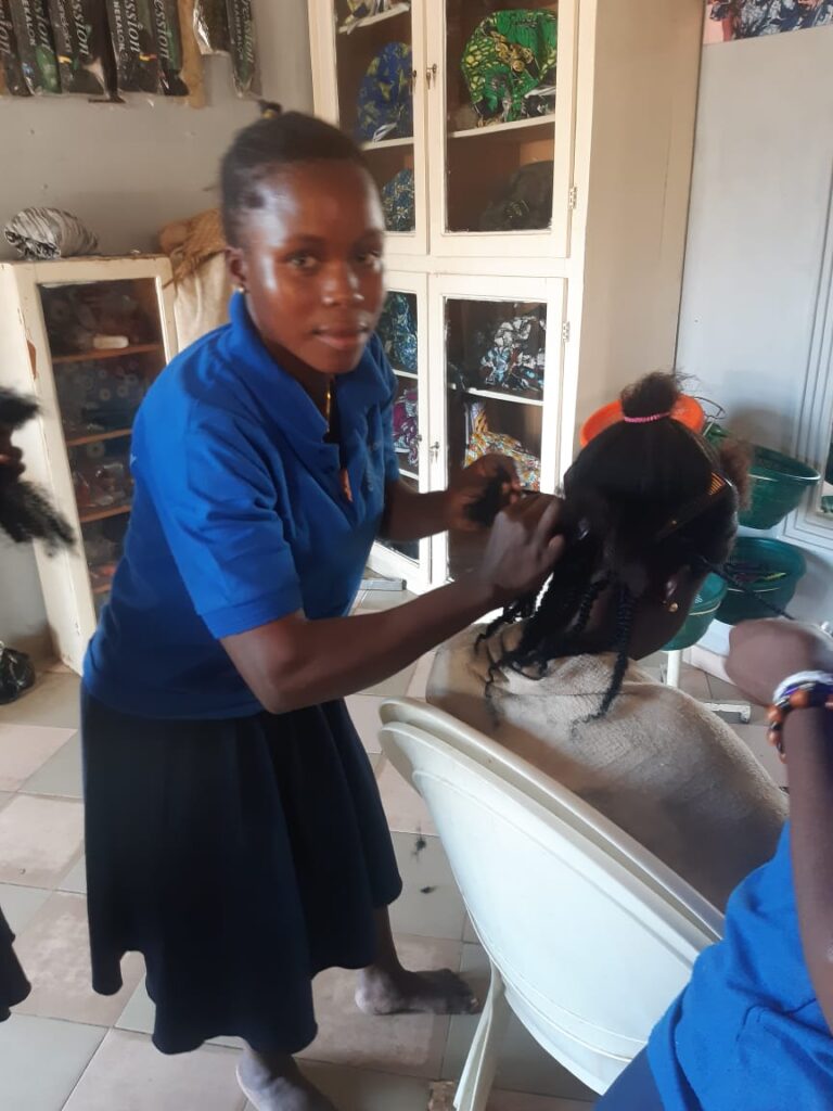 Dans le cadre du programme de formation professionnelle mis en place par Espoirs d’Enfants, Rose a choisi de se former au métier de coiffeuse. Chaque jour, elle se rend avec sérieux et détermination dans son atelier d’apprentissage, où elle acquiert patiemment les gestes du métier : tressage, soins capillaires, pratique sur modèles… autant d’étapes qui la rapprochent de son objectif.
