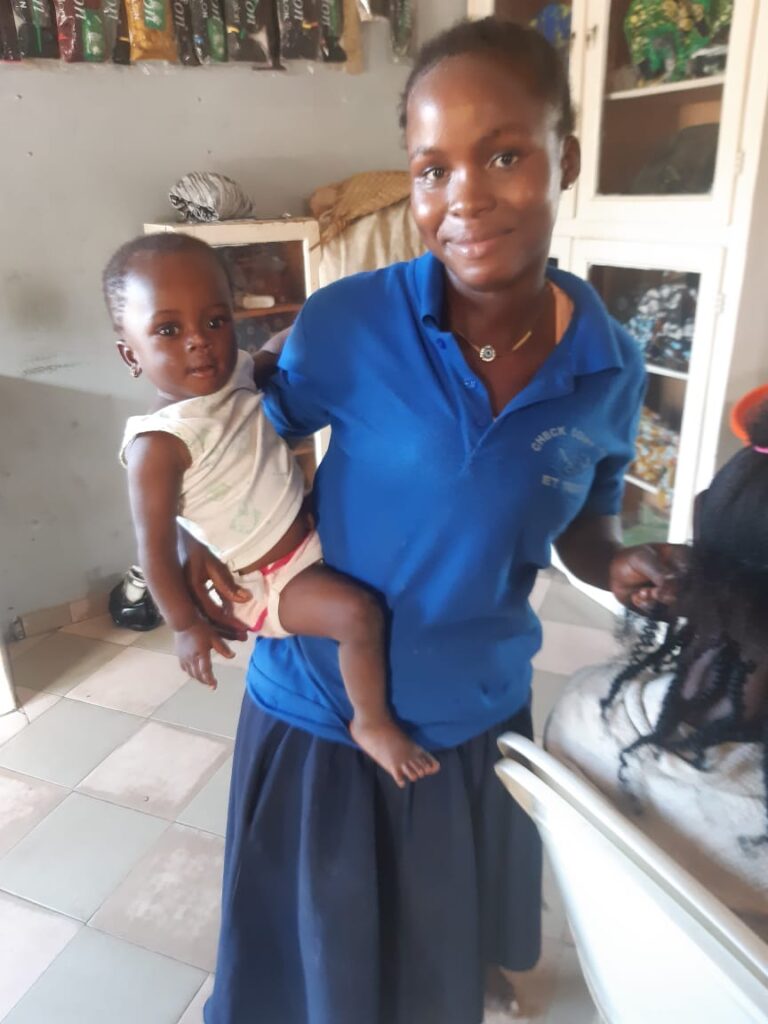 est une jeune fille de 18 ans, originaire du sud du Bénin. Très tôt, elle a dû faire face à des épreuves qui auraient pu briser bien des parcours. Devenue mère à seulement 17 ans, elle élève aujourd’hui seule sa petite fille, âgée d’un an et demi, qui est devenue sa principale source de force et de motivation.